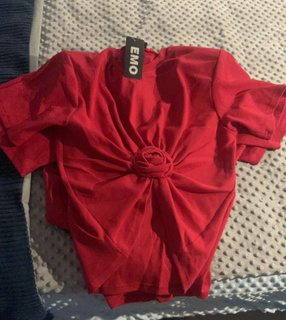 T-shirt z ozdobną różą - Czerwony
