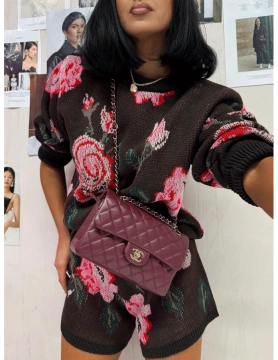( ilość produktów: 38 )Komplet sweterkowy ze spodenkami w różę - czekoladowy