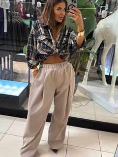 Asymetryczna koszula La Milla wiązana szara w kratę