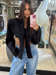 Krótka taliowana marynarka - Czarny
