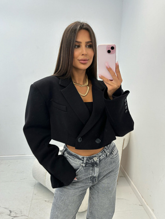 - Krótsza marynarka oversize to połączenie nowoczesnej elegancji i komfortu. Jej luźny krój i szerokie klapy dodają stylu każdej stylizacji, idealnie pasując zarówno do jeansów, jak i eleganckich spodni.