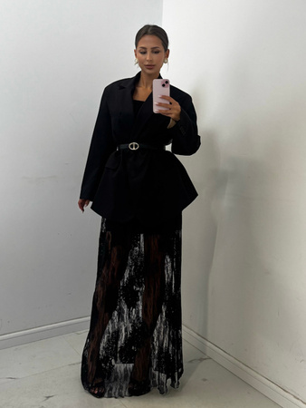 - Elegancka spódnica z koronki o delikatnym, ażurowym wzorze, idealnie podkreśla kobiecą sylwetkę. Krótsza podszewka subtelnie eksponuje nogi, nadając stylizacji lekkości i zmysłowego charakteru.