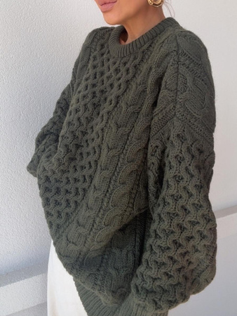 Długi Sweter z ozdobnym splotem - Khaki