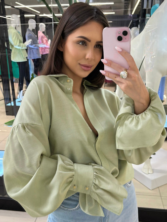 - Elegancka i efektowna koszula z ozdobnymi guzikami zachwyca dopracowanym krojem – zwężane rękawy przy nadgarstkach podkreślają smukłość dłoni, a rozszerzający się materiał dodaje lekkości i szyku.