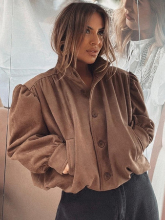 - Zamszowa kurtka bomberka zapinana na guziki to stylowe połączenie klasyki i nowoczesności. Wykonana z miękkiego, przyjemnego w dotyku zamszu, będzie idealnym uzupełnieniem jesiennej stylizacji.