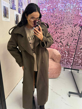 La Milla Ocieplany Płaszcz Wełniany czekoladowy maxi Linia Premium