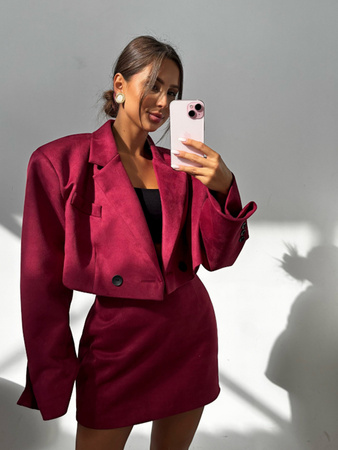 - Zamszowa marynarka to elegancka i ponadczasowa propozycja, idealna na chłodniejsze dni. Do kompletu można dokupić dopasowaną spódniczkę, tworząc stylowy i harmonijny zestaw.