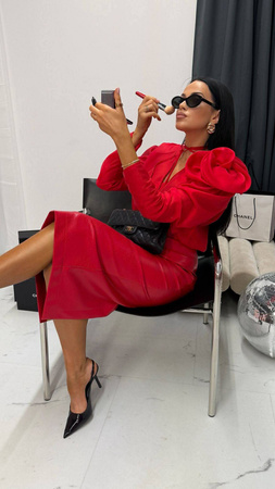 SPÓDNICA MAXI EKO SKÓRA CZERWONA LAMILLA Z PASKIEM