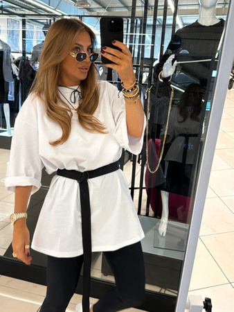 - Luźny oversize'owy t-shirt, który świetnie pasuje do naszego paska, tworząc stylowy i wygodny zestaw. Prosty krój, który idealnie sprawdzi się na co dzień.