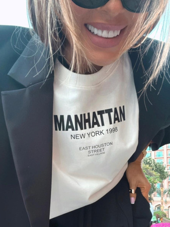 - Stylowa bluzka oversize o nieco krótszym kroju, który subtelnie podkreśla sylwetkę, jednocześnie zakrywając brzuch. Świetnie pasuje do jeansów i spodni z wysokim stanem, tworząc wygodny look na co dzień.